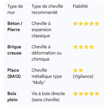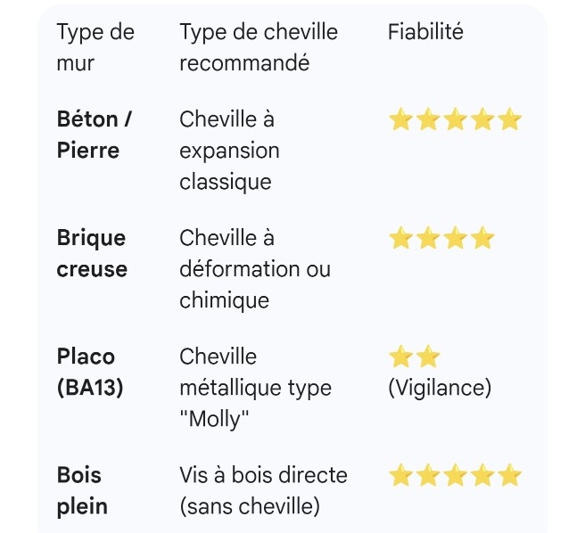 Le bon matériel : Nos supports sont conçus pour durer, mais leur solidité dépend de votre mur. Assurez-vous d'avoir des chevilles adaptées à votre support (Béton, Brique ou Placo).